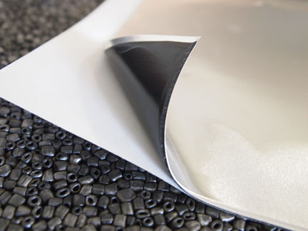 V-MAX features a lightweight buytlene layer that is bonded to a 6 mil, silver anodized aluminum sheet. The high quality butylene layer is very thin reduces the overall weight of the product and positions the aluminum layer as close to the vibrating surface as possible.