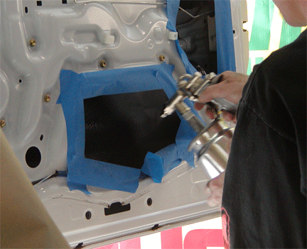 The SG-1 spray gun is used to treat large surface areas quickly with VB-1X, a vibration damping compound.
