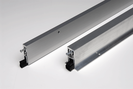 The 370A mechanical door seals are designed to be flushed directly into the bottom of the door. When the door is open, the seals are retracted into the aluminum housing and suspended completely out of sight.