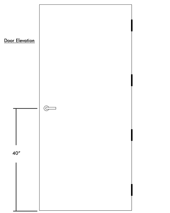 Hardware: Door, frame, trim, handle, hinges, perimeter sound seals and door bottom are supplied as part of the tested assembly. Mortise locks available.